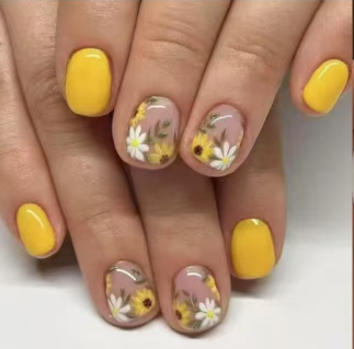 When your fingertips meet the bright yellow, it's as if the entire summer's sunshine has been kneaded into the nails. On the milky white base, hand-painted goose-yellow little daisies are paired with three-dimensional petal glue, allowing you to feel the texture of blooming flowers. Each daisy carries the gentle meaning of "peace and hope," making your fingertips bloom with natural vitality in every gesture.